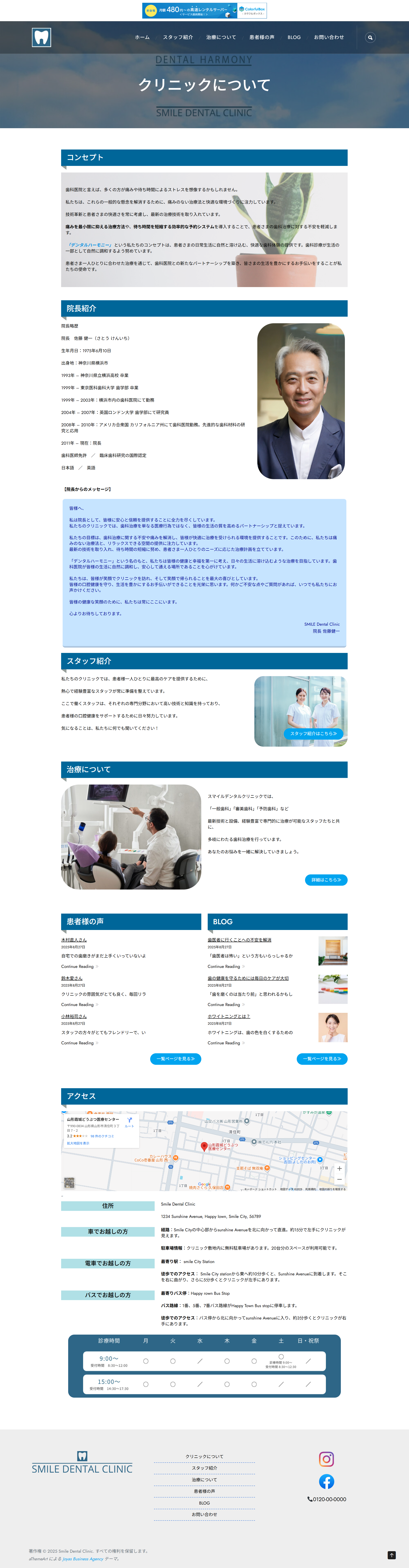 トップ画面での画像スライド、口コミ情報の表示、GoogleMapでの店舗所在地の表示、お問い合わせフォームなどを実装させていただいております。