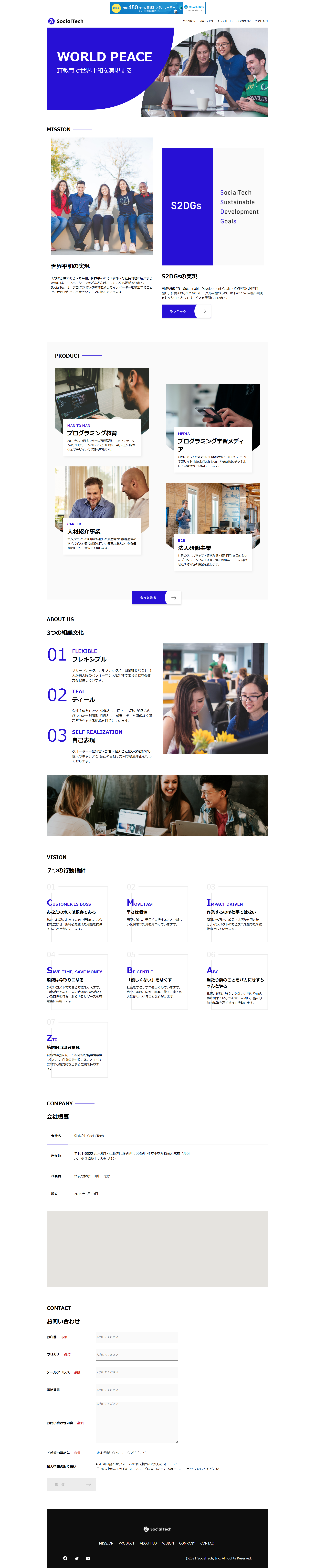 グローバルナビゲーション(上部メニュー)を押したときの自動スクロール処理。また、お問い合わせフォームは企業様のメールへ送信される処理を実装しております。